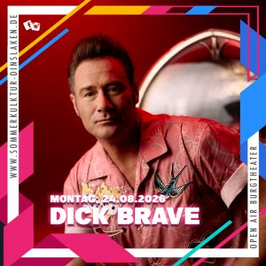 Mit seiner mitreißenden Mischung aus Rock ’n’ Roll, Retro-Charme und schweißtreibender Live-Energie hat Dick Brave schon früh Kultstatus erlangt und ist nun bereit für sein fulminantes Comeback. Vor über zwei Jahrzehnten eroberte er bereits wie aus dem Nichts die Bühnen, die Charts und die Herzen seiner Fans, bis er ebenso plötzlich wieder verschwand. Jetzt kehrt das kanadische Kult-Phänomen erneut zurück, und zwar genau dorthin, wo Rock ’n’ Roll hingehört: live auf die legendärsten Club- und Open Air-Bühnen. Begleitet von einer furiosen Band, hat er mitreißende Songs und sein neues Album „Back for Good“ im Gepäck. Mit den größten Comeback-Hits aller Zeiten – für sein größtes Comeback aller Zeiten!