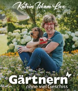 All das und noch viel mehr gibt es in „Gärtnern ohne viel Geschiss“, dem Live-Programm von und mit Katrin Iskam. Alle Termine auf: www.mina-entertainment.de/katrin-iskam-termine